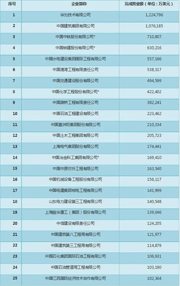 2月24日,商務部發布《2020年我國對外承包工程業務完成營業額前100家企業》榜單。