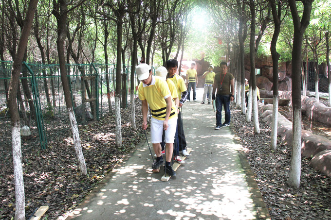 乘車到達(dá)農(nóng)莊后,活動(dòng)的第一項(xiàng)內(nèi)容是隊(duì)列訓(xùn)練,全體人員統(tǒng)一著裝,聽從教練口令,立正、稍息、向右看齊,動(dòng)作一致,隊(duì)列整齊劃一,個(gè)個(gè)精神抖擻。隊(duì)列訓(xùn)練結(jié)束后,是闖關(guān)奪冠比賽,79人被分為5個(gè)小分隊(duì),每隊(duì)成員積極發(fā)揮聰明才智,隊(duì)長集思廣益,為本隊(duì)征集隊(duì)名和Logo,并在隊(duì)旗上描繪出具有本隊(duì)特色的動(dòng)員口號(hào)。每支小分隊(duì)發(fā)有一張地圖,起點(diǎn)不同,但都需闖過五大難關(guān),每一關(guān)都規(guī)定隊(duì)員必須先完成指定任務(wù),再回答十個(gè)問題,用時(shí)最少,回答問題準(zhǔn)確率最高的一隊(duì)為勝。這五大難關(guān)分別是:祥龍獻(xiàn)寶,瑞龍戲珠,猛龍吐珠,潛龍轟天,碧水龍舟。比賽過程中,青年員工們熱情高漲,目標(biāo)明確,充分發(fā)揮團(tuán)隊(duì)協(xié)作精神,爭分奪秒完成各項(xiàng)任務(wù)。這是屬于我們青年人的舞臺(tái),恣意揮灑著青春,布滿汗水的笑臉在陽光下熠熠生輝。經(jīng)過緊張激烈的比拼后,最終第一小分隊(duì)奪得最后的冠軍,歡呼祝賀聲響成一片。