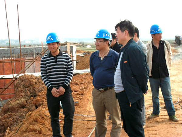 董事長(zhǎng)、總經(jīng)理王元旦察看施工現(xiàn)場(chǎng)