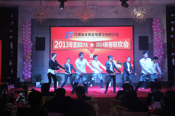 聯(lián)歡會(huì)文藝表演在舞蹈《中國(guó)夢(mèng),我的夢(mèng)》中拉開(kāi)帷幕,歌曲聯(lián)唱、朗誦、小品、情景劇、激情熱舞等文藝節(jié)目先后上演,精彩的表演引來(lái)了全場(chǎng)掌聲雷動(dòng),充滿(mǎn)了歡聲笑語(yǔ)。新的一年開(kāi)啟新的希望,新的征程承載新的夢(mèng)想,《水利人的一天》、《贊美水利、走向世界》等篇章抒發(fā)出江西水建兒女迎著水利春天的腳步,肩并著肩,手牽著手,一起為公司和個(gè)人的美好明天努力奮斗的壯志與豪邁!