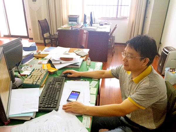 走進(jìn)財(cái)務(wù)部的辦公室,周家煌的辦公桌上的擺設(shè)一目了然:桌面整潔干凈,桌上的文件排放的整齊有序。左上角壘起來的倆堆書籍,其一是《財(cái)務(wù)會(huì)計(jì)》、《中國稅務(wù)》等財(cái)務(wù)專業(yè)的雜志;另一堆書籍置于頂部的是《計(jì)算機(jī)財(cái)務(wù)管理:財(cái)務(wù)建模方法與技術(shù)》,往下的是諸如《計(jì)算機(jī)辦公軟件應(yīng)用》、《信息時(shí)代的財(cái)務(wù)創(chuàng)新》等。