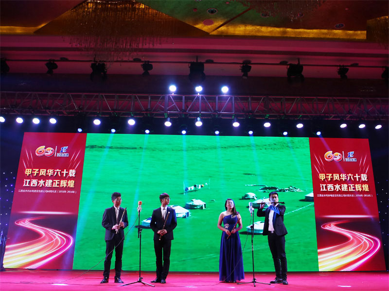 在喜慶熱鬧的開場舞《盛世中華》樂曲聲中,拉開了晚會的序幕,一曲優美動聽的《今天是你的生日》,表達了對公司六十華誕的深情祝福,配樂詩朗誦《我驕傲,我是水建人》抒發了水建人對水利事業的熱愛與執著,舞蹈《我的祖國》,展現了公司退休女職工的精神風采和對公司的深厚感情,男聲獨唱《羅灣那個地方》,喚起了多少“羅灣水建人”曾經在那里生活的記憶,來自上海的退休職工代表,為晚會帶來一首自己改編的歌曲《水建的朋友來相會》,詮釋了他們的激情與夢想,最后,由公司高中層管理人員和總部員工組成的60人大合唱《團結就是力量》,把晚會推向了高潮。團結是我們的力量之源,團結是企業騰飛的支點,走過了六十年輝煌歷程的江西水建,正在昂首闊步踏上新的征程。讓我們團結起來,以必勝的信心,發奮的努力,繼承和發揚老一輩水建人的精神和傳統,擔當起新一代水建人改革創新科學發展的光榮使命,繼往開來,解放思想,開拓創新,凝心聚力,不斷開創江西水建發展的新局面,創造更加燦爛的明天!