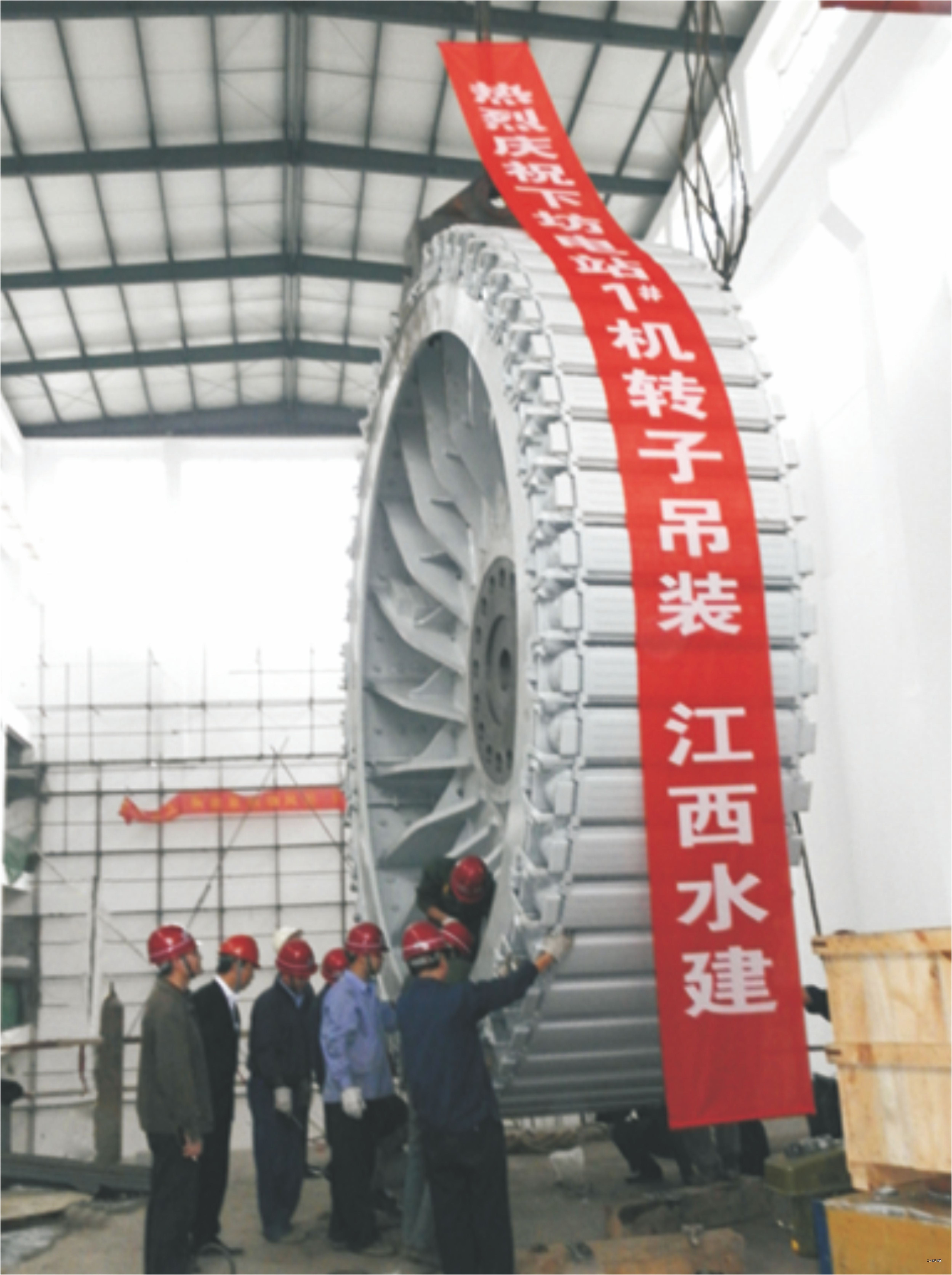 江西省下坊水電站1機(jī)轉(zhuǎn)子吊裝