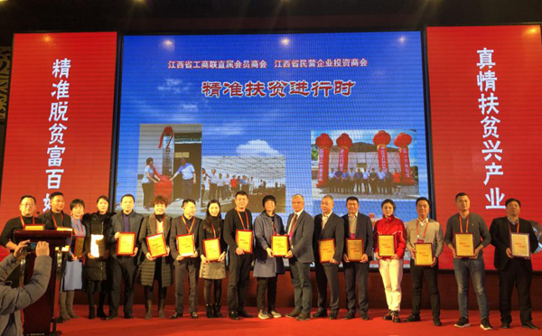 1月19日,省工商聯二屆三次理事會議暨2019第二屆《贛鄱投資》論壇在南昌召開。公司2018年度精準扶貧工作受到省工商聯直屬會員商會表彰,并榮獲“精準扶貧 無私奉獻”先進單位稱號。